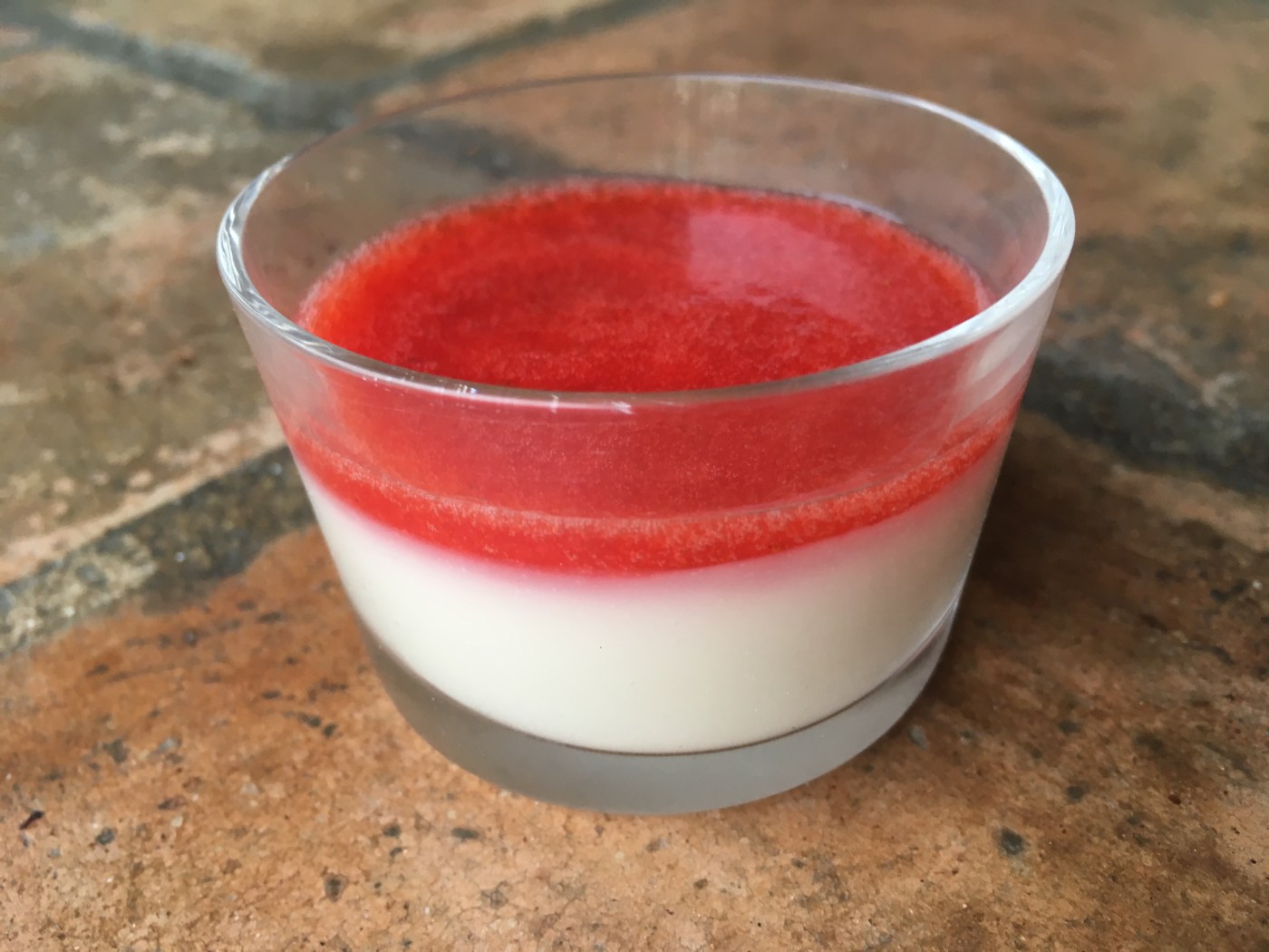 Versez le coulis sur chaque verrine. Mettre au réfrigérateur.