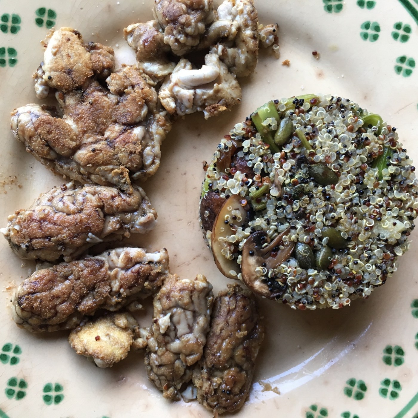 Présentez dans chaque assiette avec un emporte-pièce le quinoa et les morceaux de cervelles autour ; citronnez-les et salez-les à votre convenance.