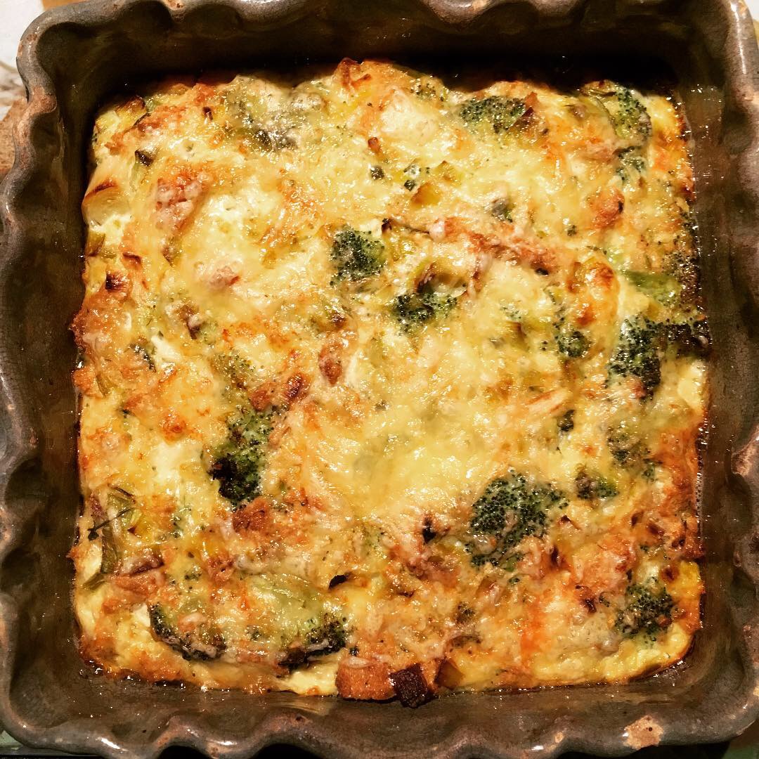 Dans une poêle, faites revenir les poireaux émincés et les fleurettes de brocolis dans uns c-à-s d’huile d’olive pendant 10 mn. Au bout de ce temps, versez-les dans le mélange précédent.