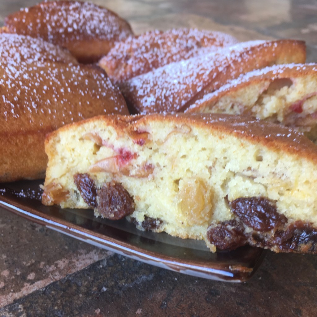 Dans un saladier, versez la farine, la poudre d’amande, les amandes effilées. Mélangez. Ajoutez les oeufs, le fromage blanc puis le beurre fondu, les prunes, les raisins secs avec seulement 1 c-à-s du sirop obtenu et enfin le rhum.