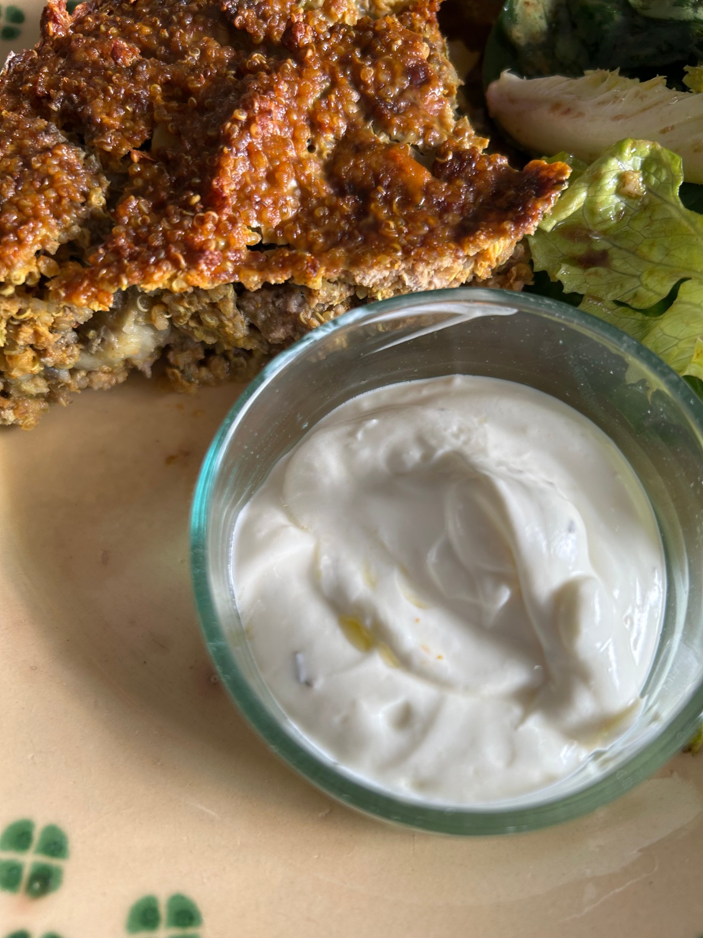 Servez avec la sauce au yaourt dans laquelle vous aurez ajouté les feuilles de menthe et une salade verte.
