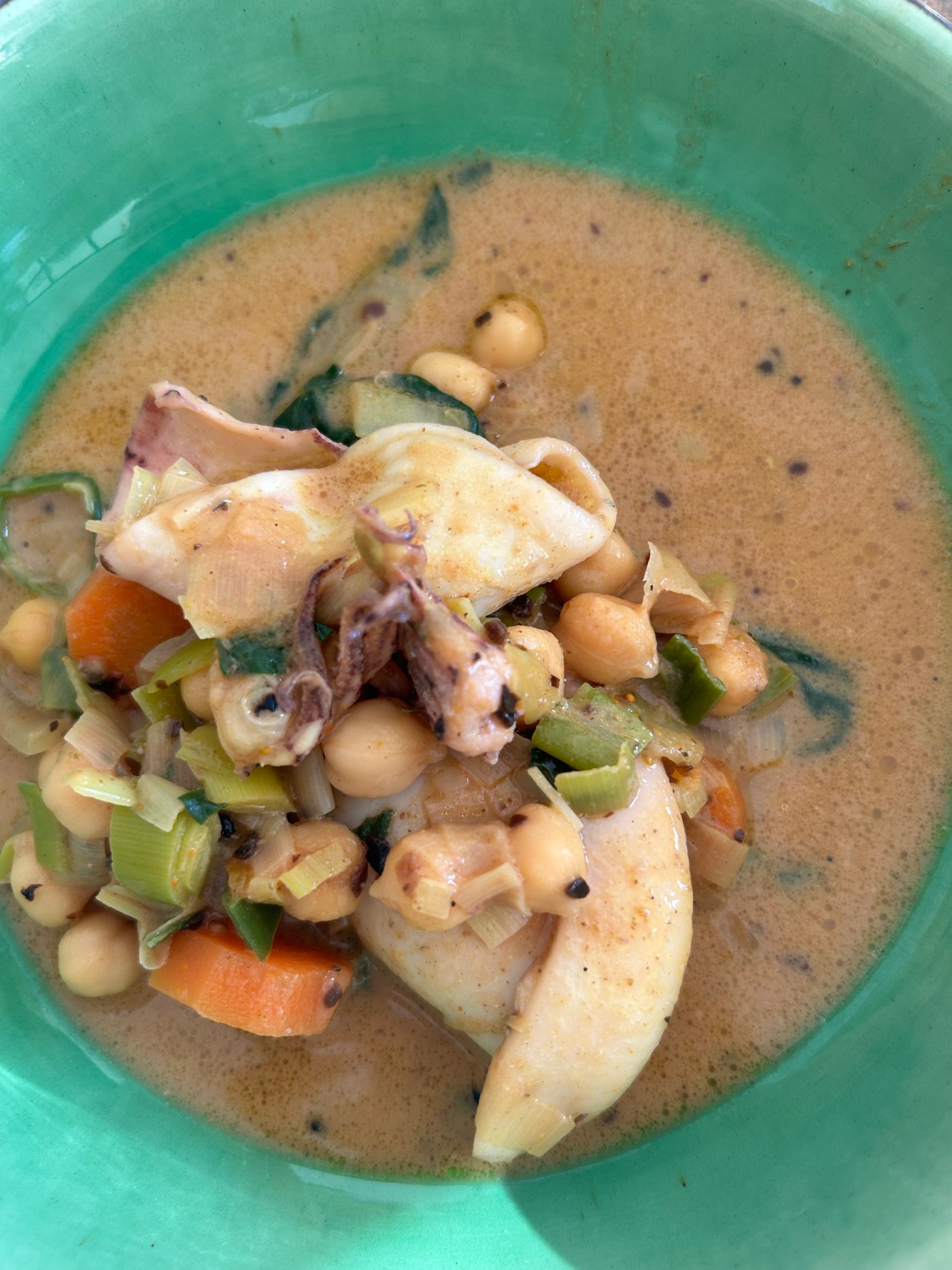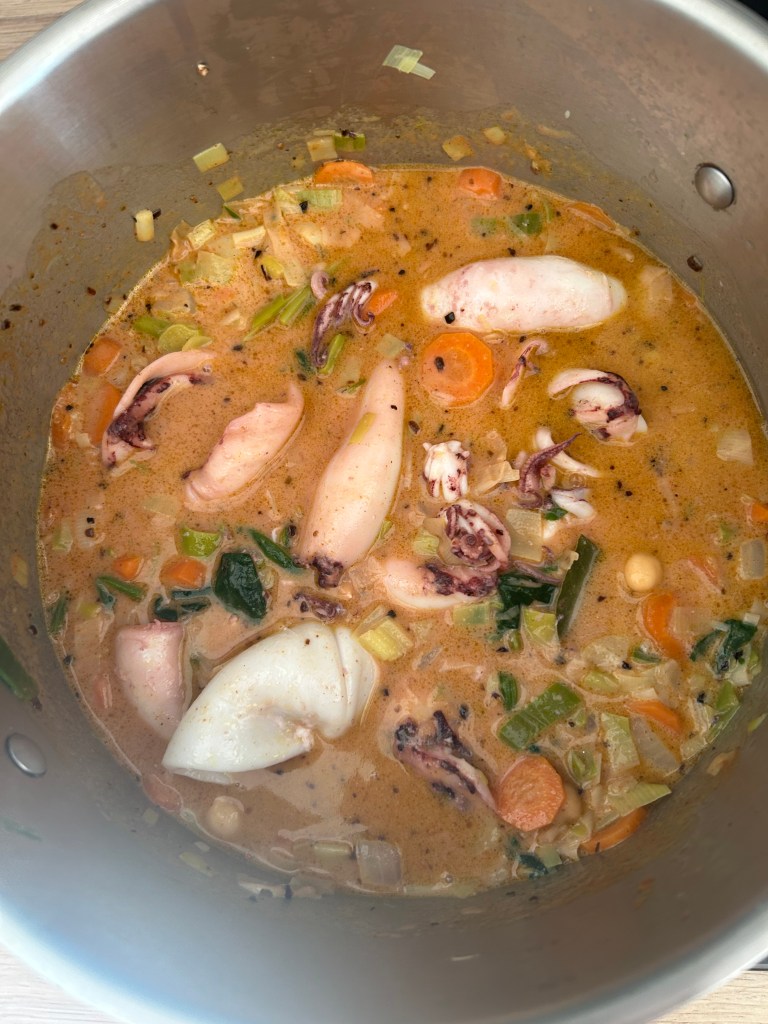 Vous pouvez remplacer les calamars par du poisson de la dorade, du dos de cabillaud…